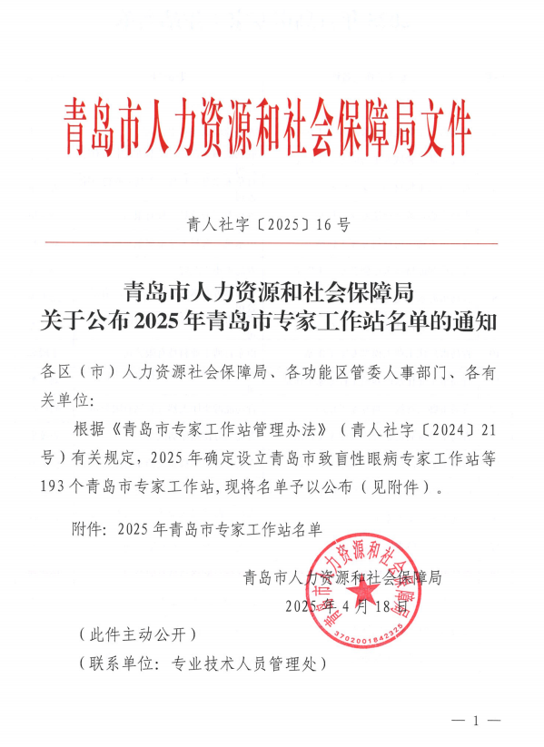 近日,青島市人力資源和社會(huì)保障局公布了《2025年青島市專家工作站名單》,我司憑借在行業(yè)內(nèi)的卓越創(chuàng)新能力和技術(shù)實(shí)力,成功入選并榮獲“青島市專家工作站”稱號(hào)。此次評(píng)選共有193家單位獲此殊榮,我司的專家工作站將進(jìn)一步提升企業(yè)的研發(fā)水平和核心競(jìng)爭(zhēng)力。